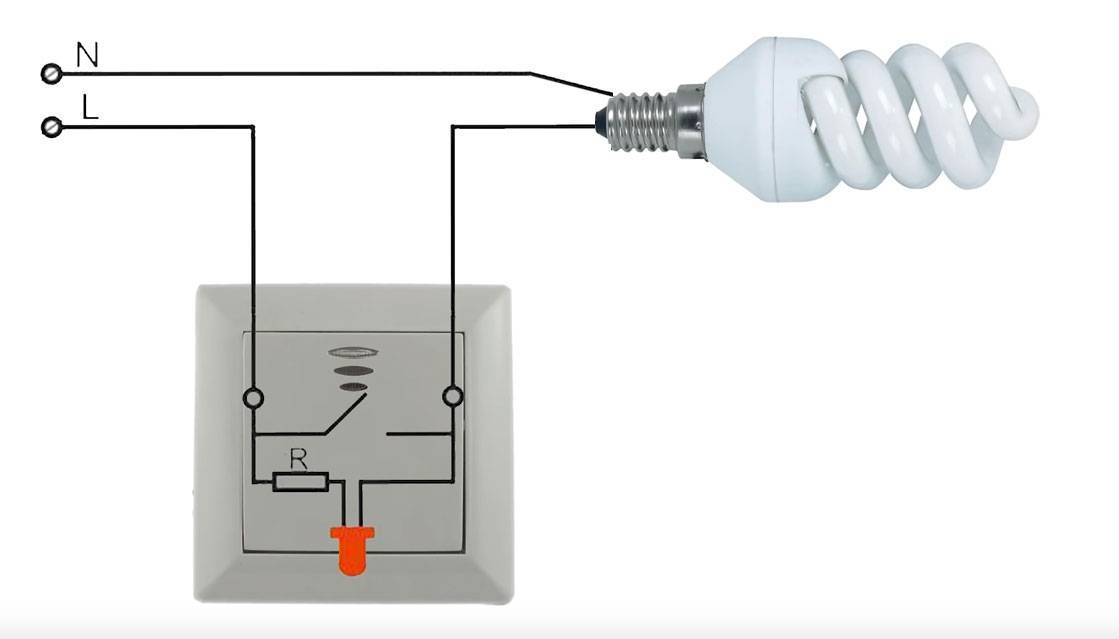 - Наличие в выключателе, управляющем коммутацией лампы, встроенного индикатора (светодиода или неоновой лампочки).