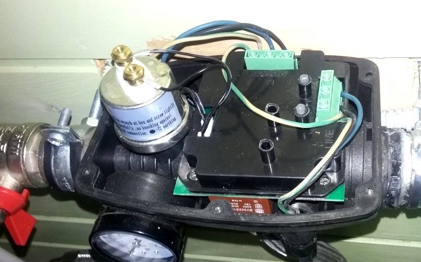 Изменение объема воды в колбе и воздуха в корпусе фиксируется автоматикой, которая контролирует циклы включения/отключения насоса
