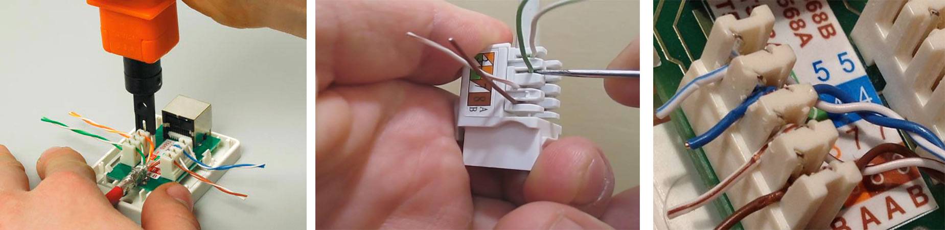 Обычно для монтажа кабеля используется специальный инструмент. Интернет-розетки Schneider Electric в сериях Merten, Unica обладают современным зажимным механизмом, который не требует дополнительного монтажного инструмента (в данном случае забивного инструмента).