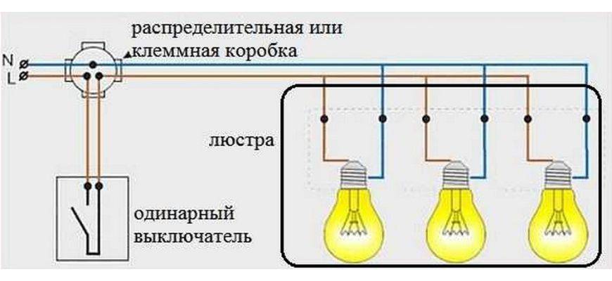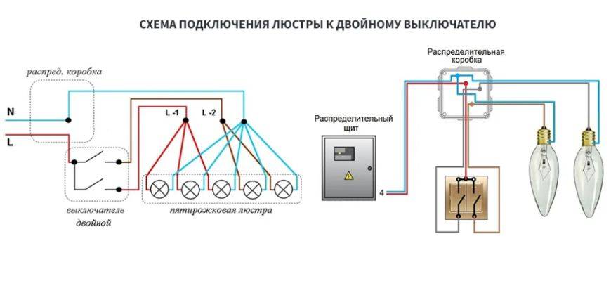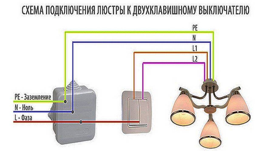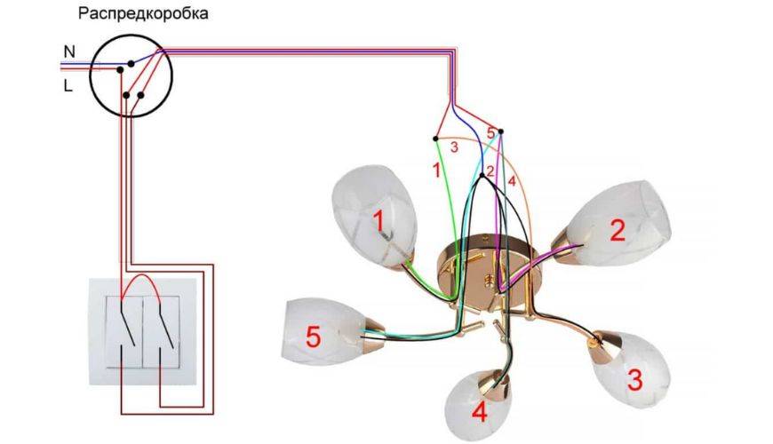 Схема подключения люстры с двойным выключателем на 4 лампочки
