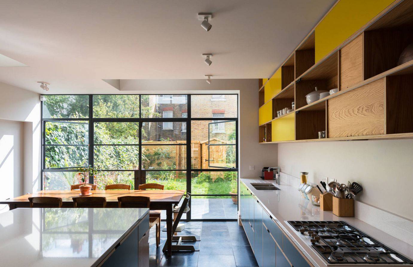 Если размеры побольше, можно разместить дополнительные источники вдоль параллельных стен. Или пересекающихся — это подойдёт кухне с угловым расположением шкафчиков.