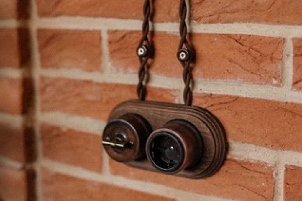 Розетки наружной фиксации с проводкой открытого типа часто используются в ретро-интерьерах