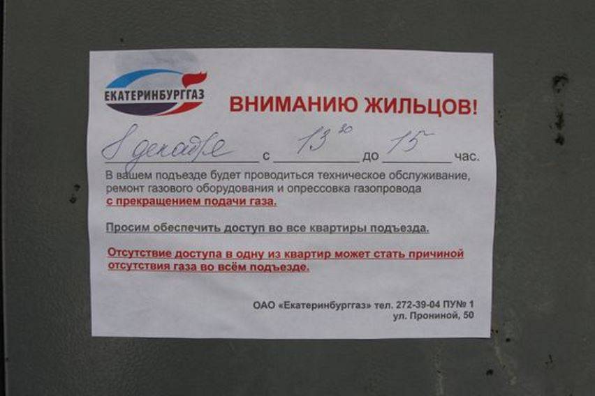 Обычно на двери подъездов вешают объявление о поквартирном обходе газовщиков, т.к. собственник жилья в это время должен быть обязательно дома