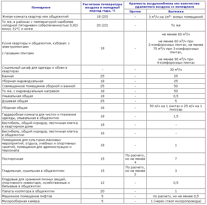 Для вентиляции помещений жилого типа, без учета кухни, туалета и ванной, достаточно естественных сил вентилирования. В отдельных квартирах и домах, проветривание может производиться только при помощи окон. Особенно эффективна такая система, в случаях их противоположного расположения.