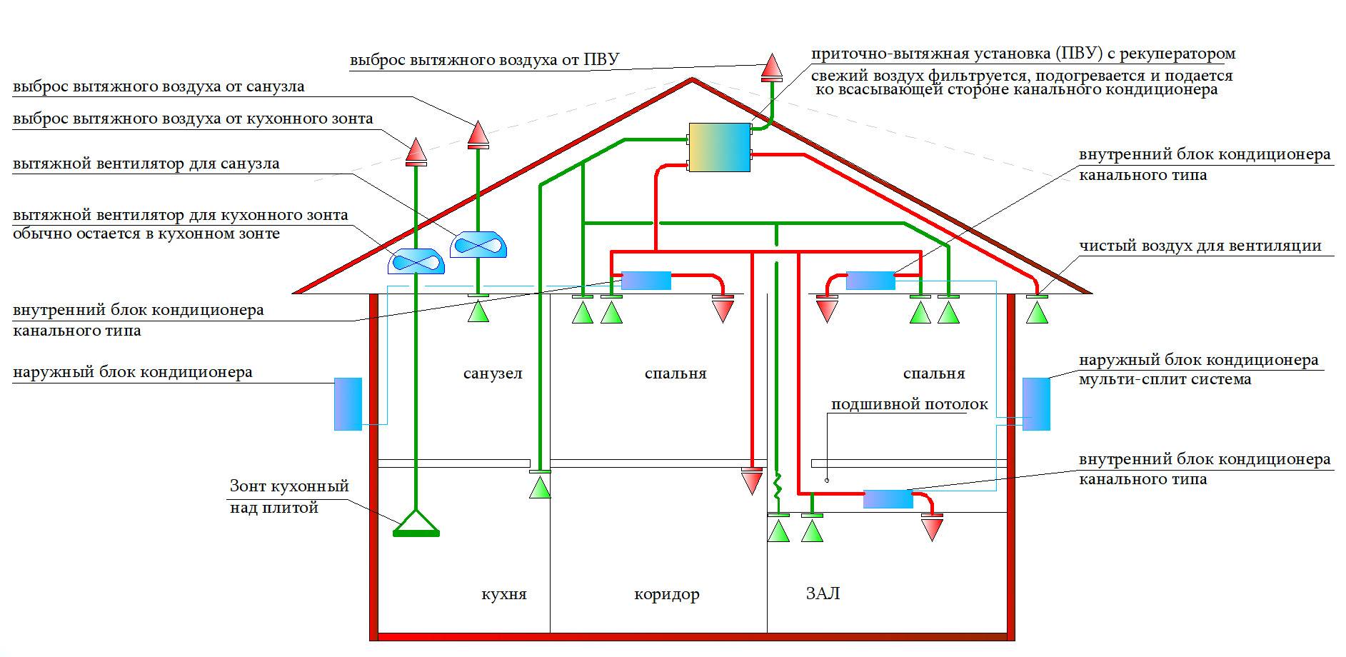 Схема вентиляции в частном доме: устройство системы, как сделать самому (прочитать подробнее)