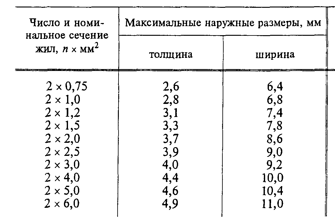 | В нашем случае провод двухжильный. Основание жил соединено между собой ленточной перепонкой, которая независимо от сечения жилы составляет 1 мм. Ее толщина должна быть не менее 0,5 мм. |
