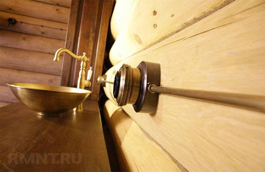 В случае, если внутренняя часть розеток и выключателей устанавливается в деревянный брус, они должны быть защищены от контакта с древесиной металлическими подрозетниками. Под накладные электроточки также следует подкладывать изоляционный материал, например, асбест или алюминий, которые предотвратят риск возгорания.