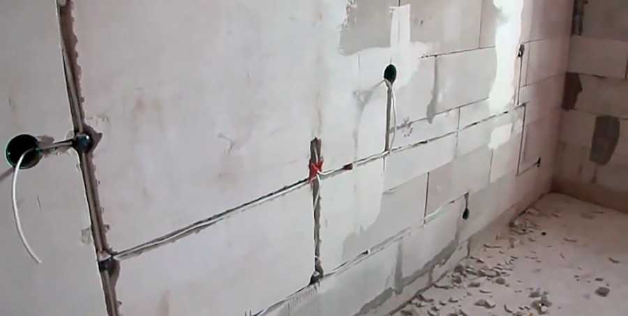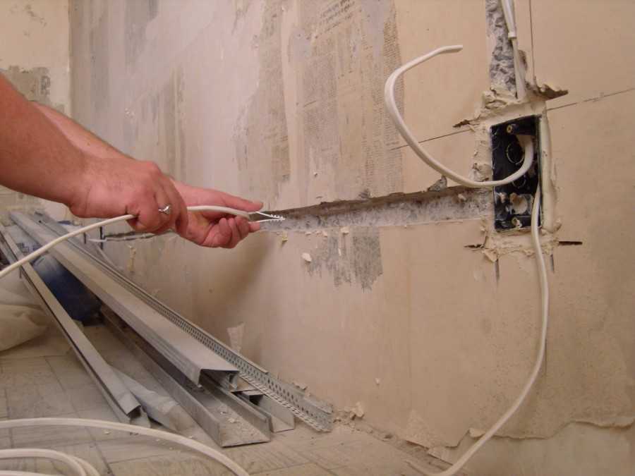 - Следуя составленной схеме, штроборезом в стенах прорезаются штробы (канавки).