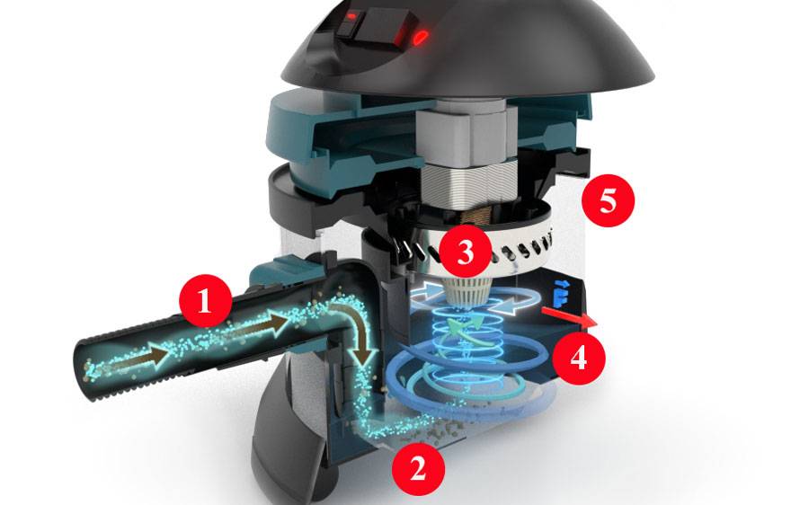 Пылесосы с сепаратором – устройства с дополнительной турбиной, внутри которой создаются высокоскоростные вихревые потоки всасываемого воздуха. Под действием центробежной силы мусор отделяется от воздуха (даже мельчайшие частички).