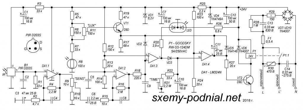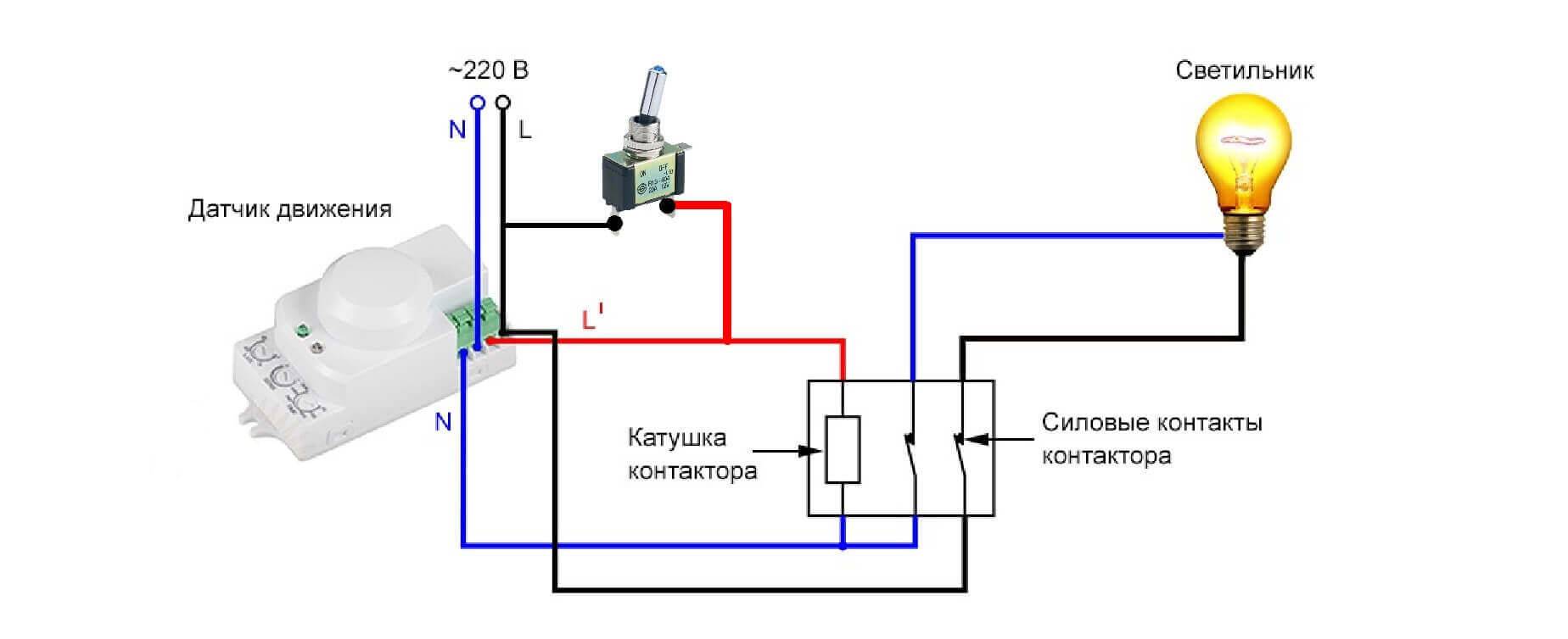 Схема включения датчика движения с выключателем
