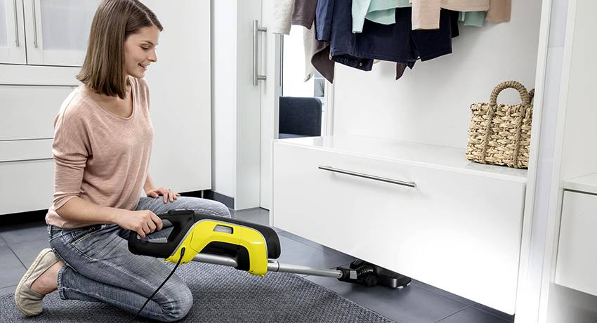 Хороший вертикальный пылесос KARCHER работает от аккумулятора предусмотрен для сухой уборки. Вертикальная парковка экономно расходует место в помещении и легко справляется с различными видами грязи. Управлять мощностью пылесоса можно с помощью тумблера на ручке. 3 ступени фильтрации позволяют индивидуально подобрать степень очистки зависимо от типа обрабатываемой поверхности. Телескопическая труба может сгибаться под нужным углом, и использоваться для уборки в самых труднодоступных местах. Фильтр тонкой очистки позволяет убирать даже самые мелкие частички. Потребляемая мощность устройства составляет 500 Вт, поэтому может беспрерывно работать до 40 минут.
