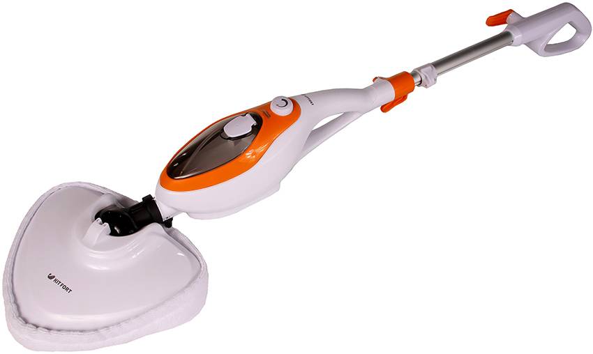 Одной из лучших универсальных паровых швабр является модель Kitfort КТ-1005, которую по функциональным особенностям можно сравнить с пароочистителем. Устройство эффективно очищает не только напольные поверхности, но и стены, текстиль и разные варианты оснований. Паровая швабра Китфорт может выполнить отпаривание складок штор и одежды. Насадка для пола имеет гибкое крепление, которое позволяет эффективно обрабатывать поверхность возле ножек мебели.