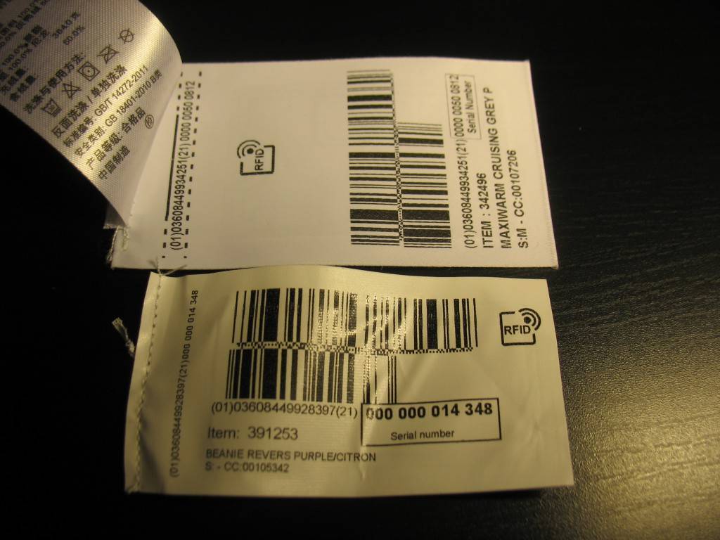 Вот шапка с RFID меткой пришитой при производстве: