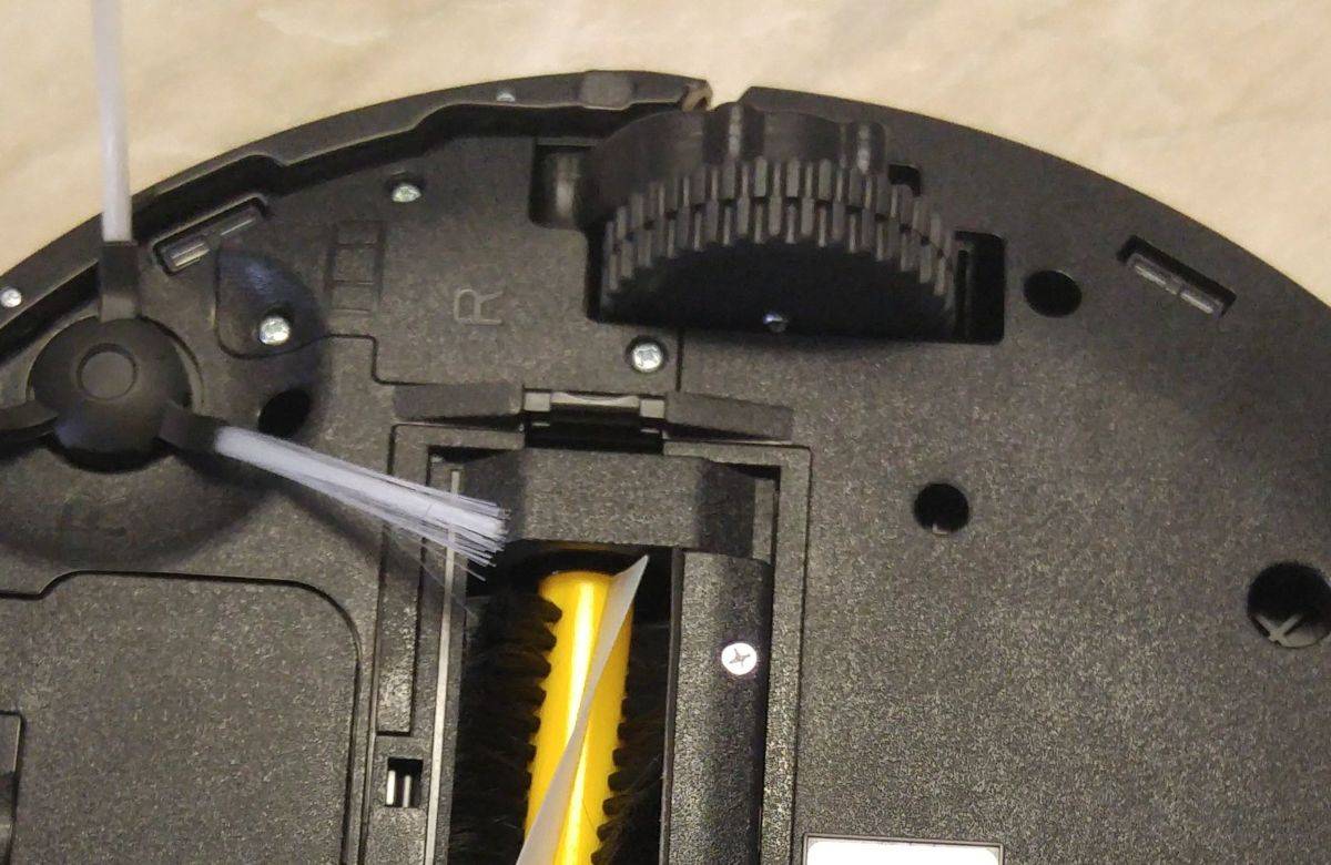 Что касается боковых щеток, они тоже требуют своевременной очистки, которая должна проводиться пользователем раз в неделю. Снимают с корпуса эту деталь при помощи небольшой отвертки, затем промывают слегка теплой водой. После высыхания можно поставить элемент конструкции робота-пылесоса на место.