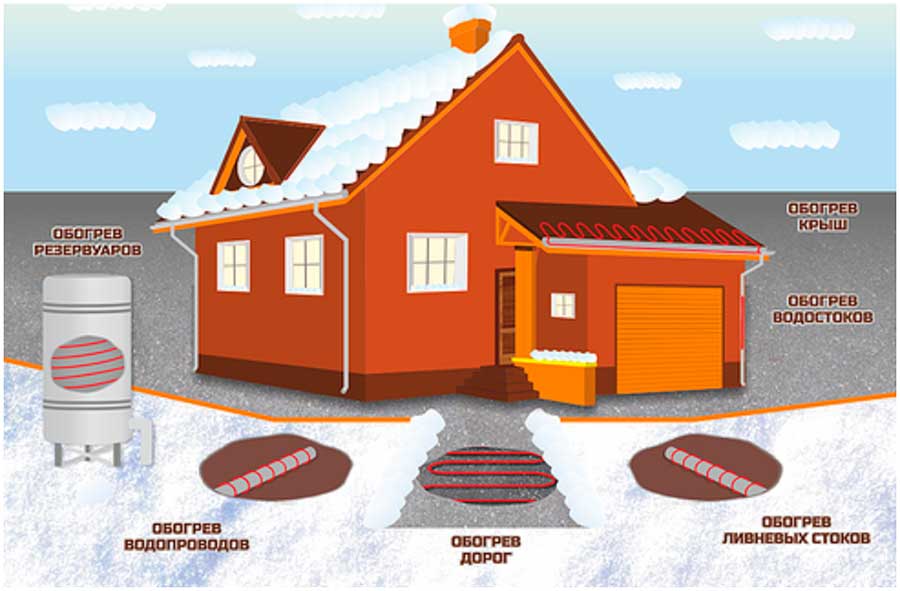 Основные области применения саморегулирующегося нагревательного кабеля: