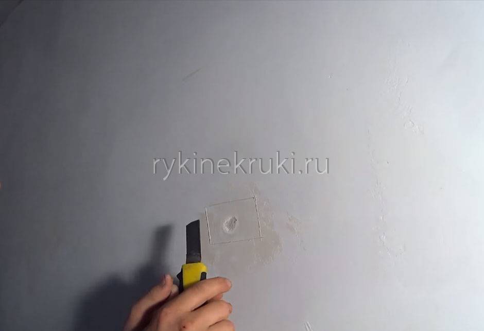 Причем удалять бумагу нужно тщательно, полностью, до гипса, чтобы не оставалось бумажных обрывков в области прямоугольника.