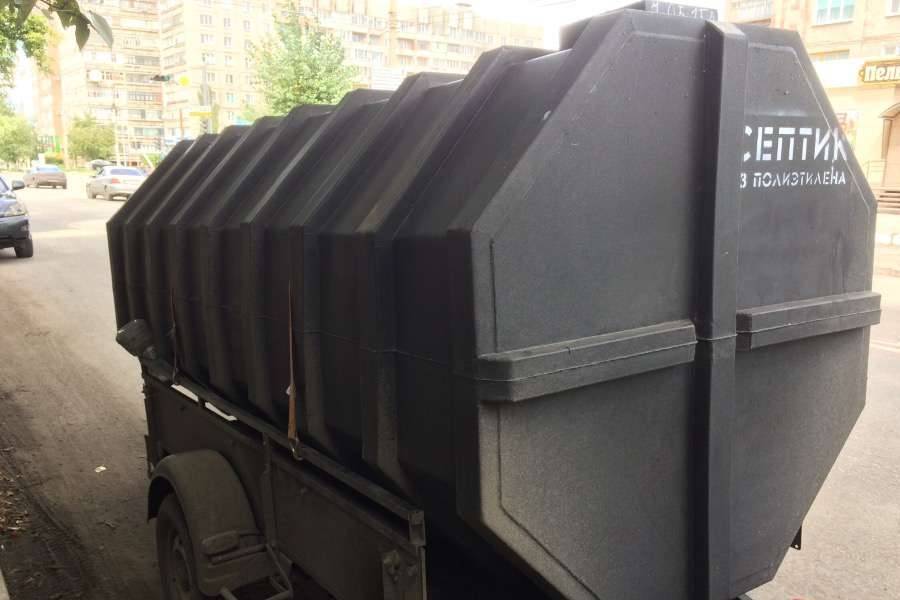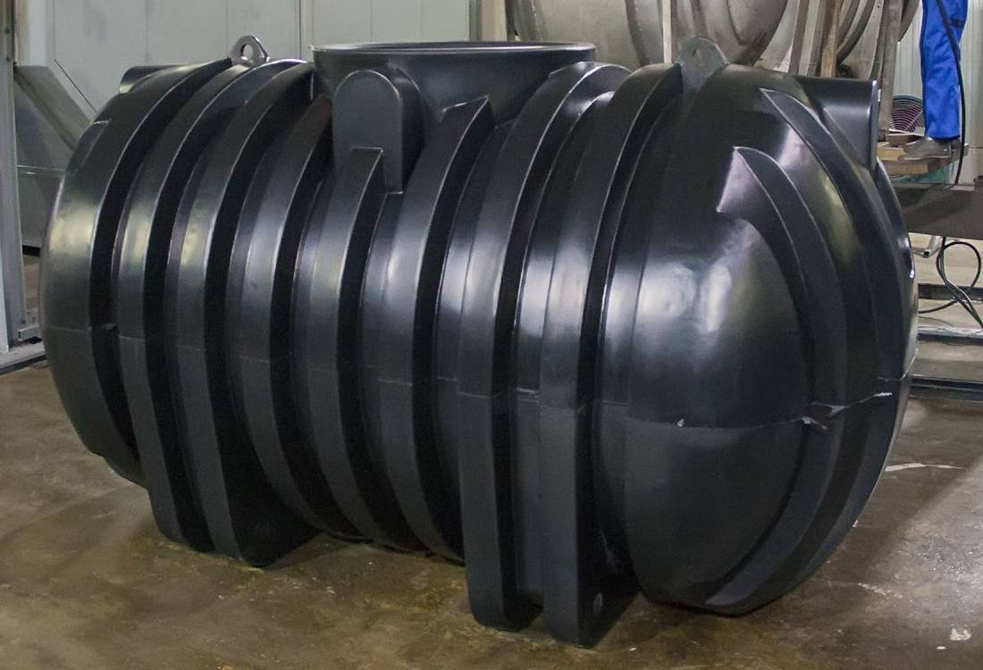 - Сдвоенная конструкция, состоящая из двух отдельных емкостей — очистного сооружения и приемного колодца. Обычно эта модель имеет объем 3 кубических метра.