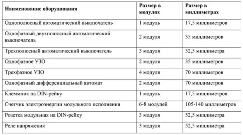 За единицу измерения здесь считается один модуль. Эта площадь равна месту, которое занимает автоматический выключатель с одним полюсом. Его ширина равняется 17 с половиной сантиметров. Данный стандарт является международным и подходит для любых современных электротехнических компонентов.