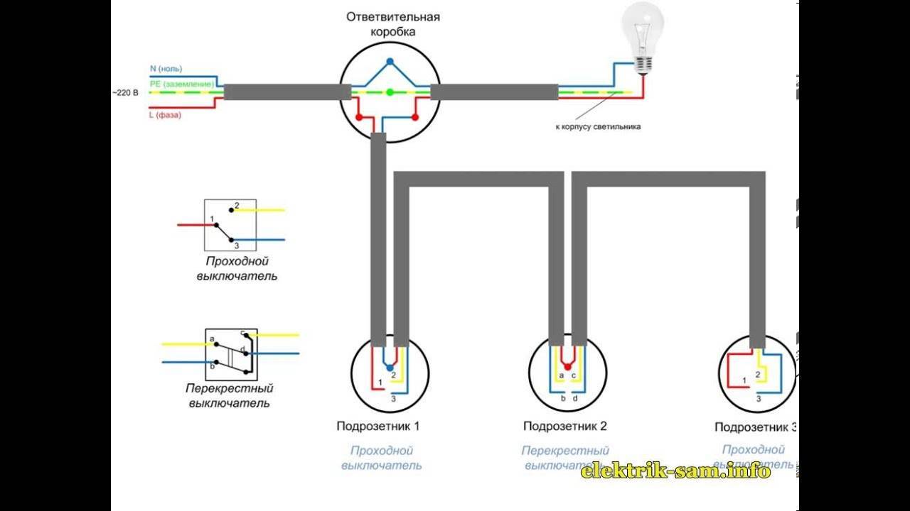 Схема подключения проходного выключателя с 3х мест: подробное видео выполнения работ