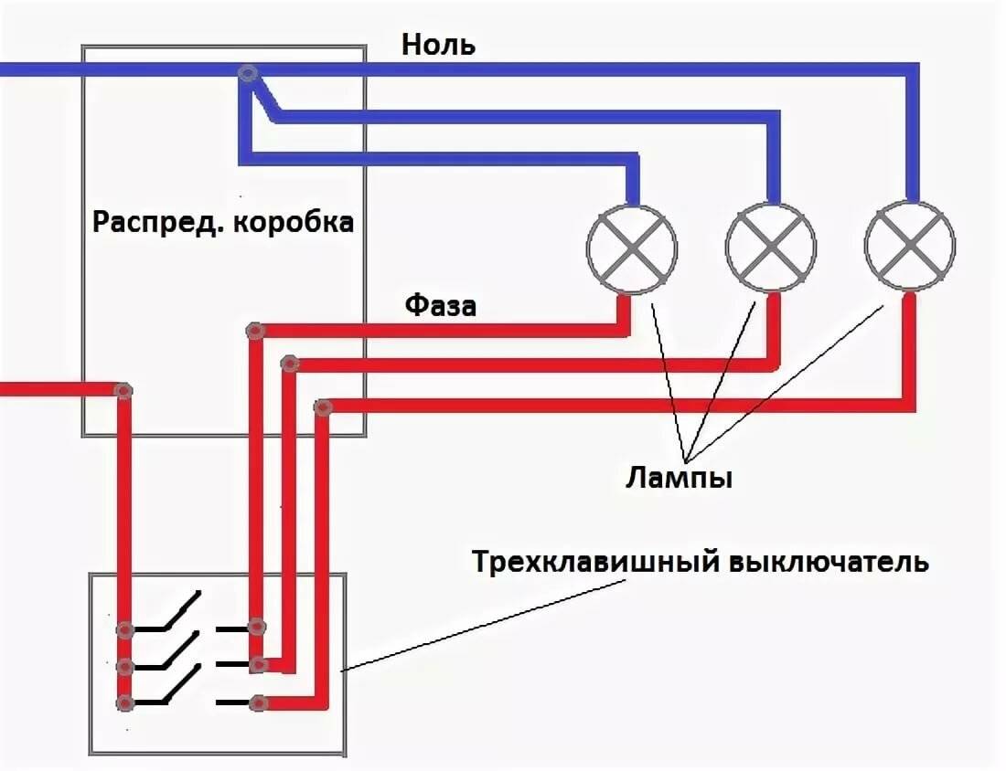 Схема подключения (СП) ПВ на 3 точки 2 лампочки пошагово