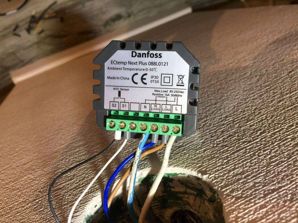- 3-й и 4-й контакты также предназначены для силового кабеля. Который отходит к элементам тёплого пола, обозначаются буквами L1 и N1, соответственно, что символизирует фазу и нуль.