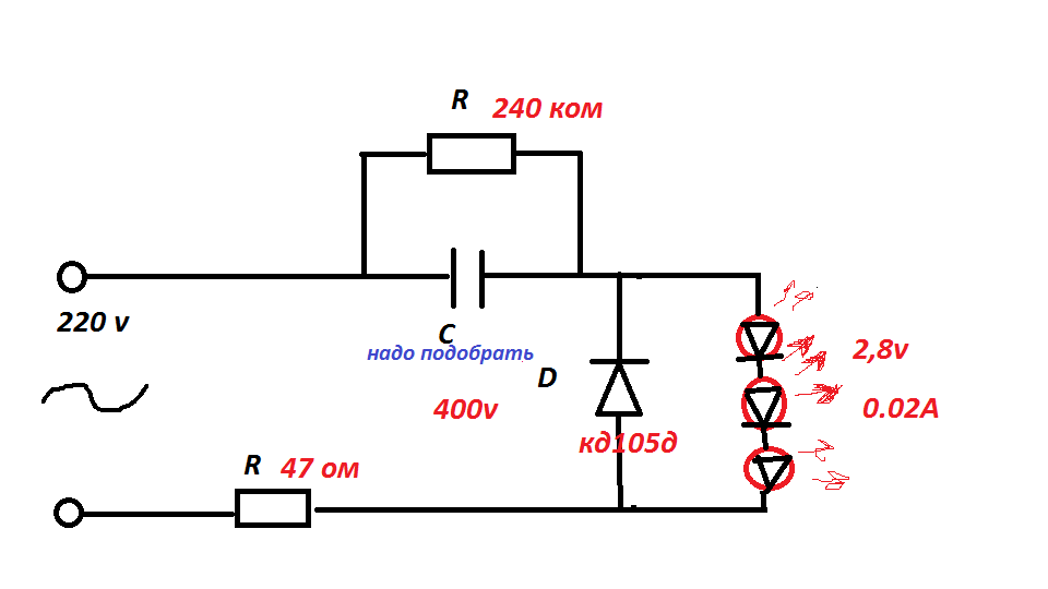 Расчет подключения светодиодов в схемах на 12 и 220 воль т