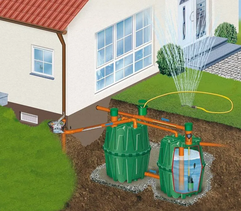 Устанавливая водосборную систему под землей, и при этом используя для ее создания резервуары большого объема, можно практически полностью обеспечить семью бесплатной водой