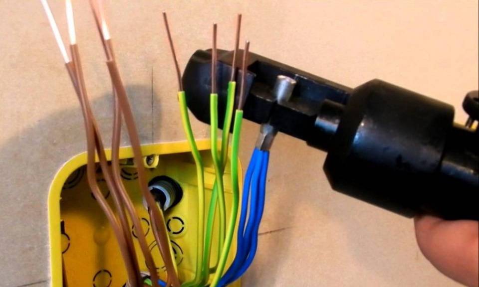 Популярный вариант соединения. Выполняется с использованием специальной гильзы по размеру пучка проводов. Материал гильзы также должен соответствовать материалу изготовления кабелей.
