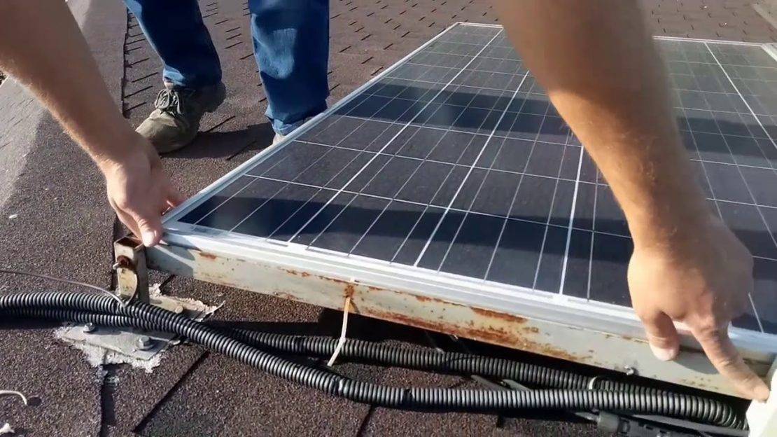 - Вначале по всем правилам на крыше размещают закупленные солнечные элементы и соединяют их друг с другом