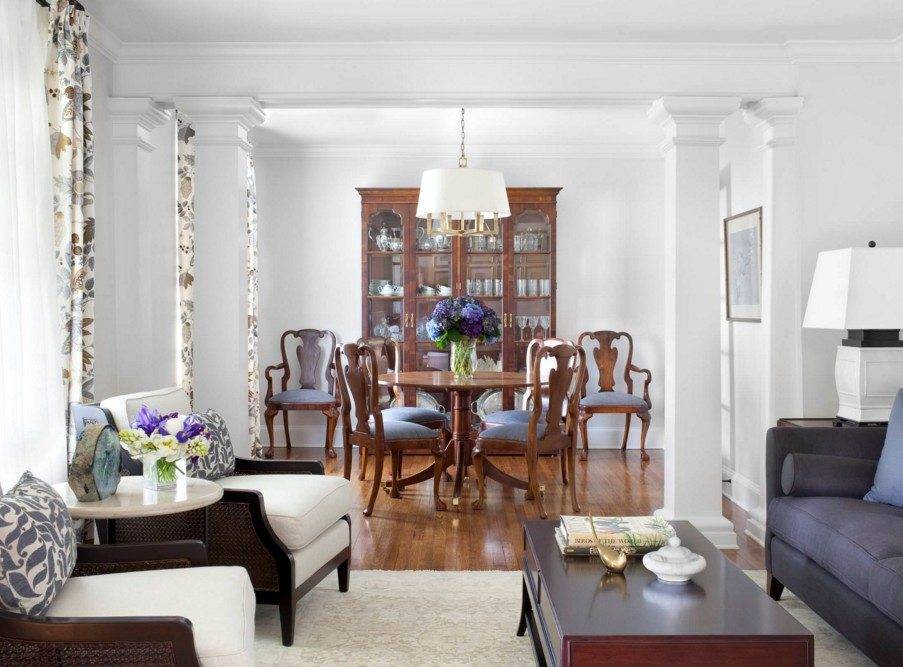 Не стоит также забывать о стиле гостиной. Для классицизма или барокко отлично подходит белый цвет в сочетании с золотистыми оттенками. Провансу свойственны светлые ненавязчивые оттенки. А в современных стилях, такие как хай-тек и минимализм, преобладают черный, белый и блестящий серый.