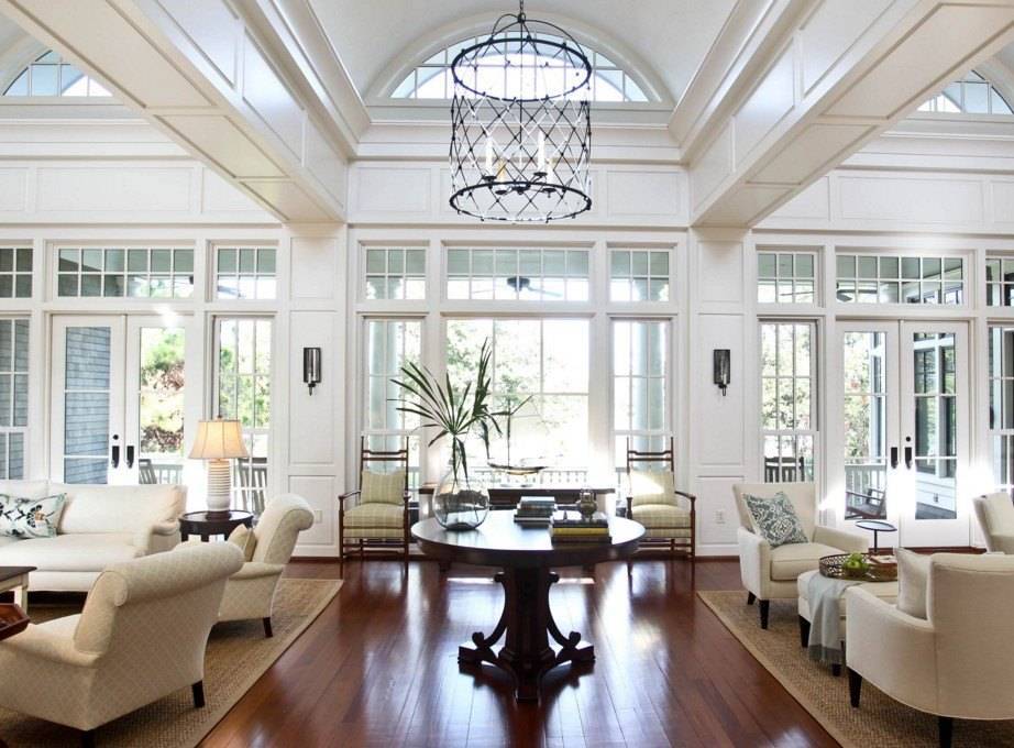 Выбор оттенка зависит от стиля гостиной. Для классических вариантов лучше выбирать приборы нейтральных цветов – бежевый, кремовый, прозрачный и белый. Подобные оттенки не нагружают пространство и хорошо вписываются в интерьер.