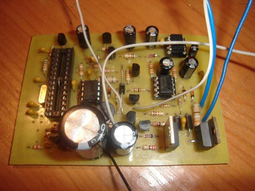 Все остальные комплектующие для прибора, создаваемого своими руками лучше приобретать в магазине. После того, как все необходимое закуплено можно приступать к сборке. Начинать лучше всего с установки микросхемы, выполняющей роль контроллера на теплоотвод, который изготавливается из алюминиевой платины площадью более 15 см². На него также монтируются симисторы. Причем теплоотвод, на который предполагается их установка должен иметь охлаждающую поверхность.