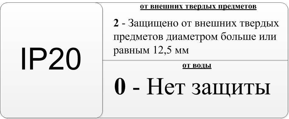 Чтобы понимать значение индекса IP, необходимо ознакомиться с расшифровкой каждого класса. Далее она приводится отдельно для 1-й цифры (защита от твердых тел) и для 2-й (от влаги).