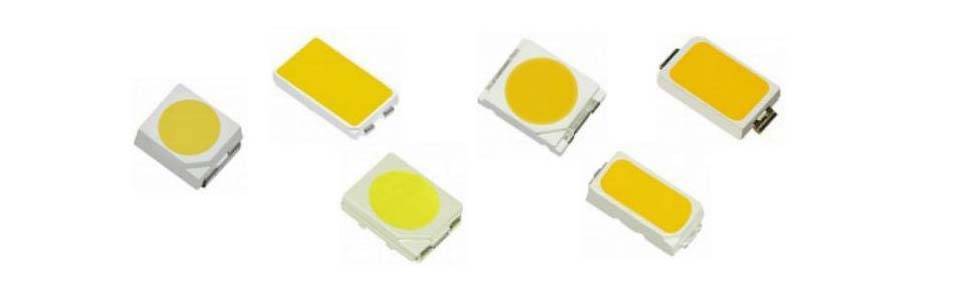SMD-светодиоды самые распространенные. Широко используются в светодиодных лампочках 220В и светильниках. Полупроводниковый чип или кристалл располагается на подложке, к которой присоединены контакты подключения.