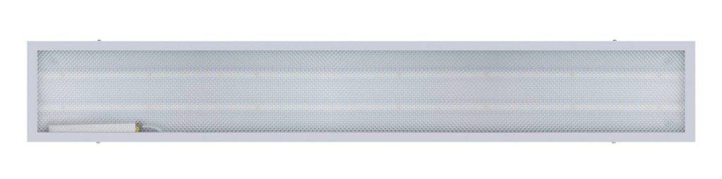 Удобная и практичная светодиодная панель прямоугольной формы работает от напряжения в 220 В. Заявленная производителем мощность – 65 Вт. Световой поток – 5500 Лм. Выдает естественное белое свечение. Уровень защиты – IP20, что не дает возможность устанавливать прибор в помещениях с повышенной влажностью и на открытом воздухе. Срок службы – 30000 часов. Лампы и драйвер дополнительно приобретать не нужно. Они присутствуют в наборе. Размеры: 0,9*59,5*119*5 см. Корпус прочный металлический. Плафон белый. Вес – 5,6 кг. Провод без вилки.