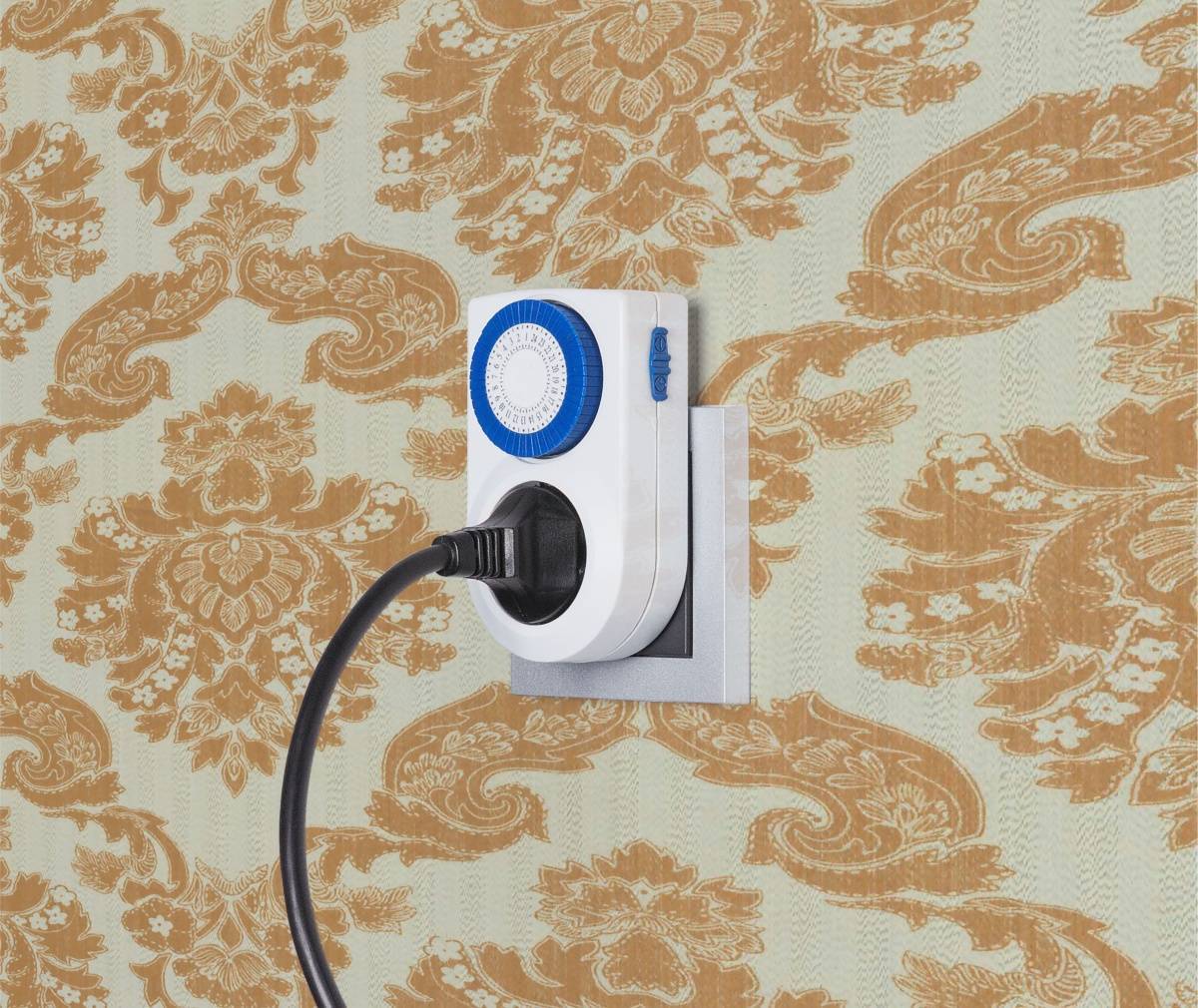 Штепсель электроприбора в посадочном месте автоматического устройства регулировки подачи электрического тока