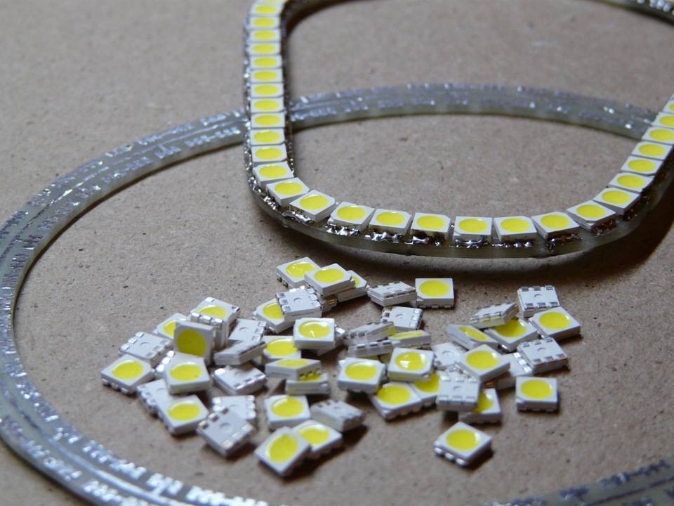 Результат правильно установленных на ленту светодиодов с помощью паяльника.