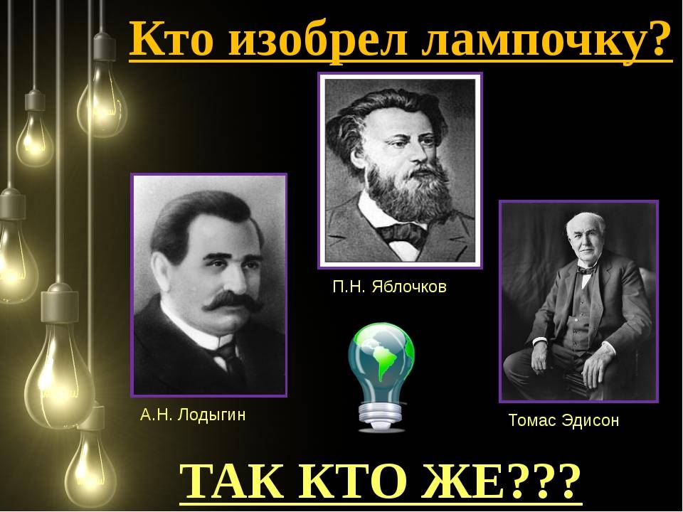 Прежде чем перейти к хронологии изобретения электрической лампочки, хотелось бы отметить, а что мы подразумеваем под понятием «электрическая лампочка». Но все они имели тот недостаток, что нельзя было включить несколько ламп в одну цепь. Приходилось использовать для каждого светильника свой источник питания. Он показал русские лампы изобретателю по имени Томас Эдисон, который в то время также работал над проблемой электрического освещения. Но заслуга Эдисона, прежде всего в том, что он изобрел и создал надсистему для этой лампы и поставил ее производство на поток, что привело к сильному удешевлению стоимости. Из сказанного следует, что у электрической лампы накаливания на самом раннем этапе было несколько изобретателей. Вероятно, искать однозначный ответ на вопрос «Кто изобрел электрическую лампочку» бессмысленно. В последние годы такие энергосберегающие лампочки находят все большее применение, не смотря на их пока еще большую стоимость, чем у традиционных ламп накаливания. Нельзя было не попытаться использовать светодиоды в качестве источников света. Они и нашли, первоначально, применение в ручных электрических фонариках.