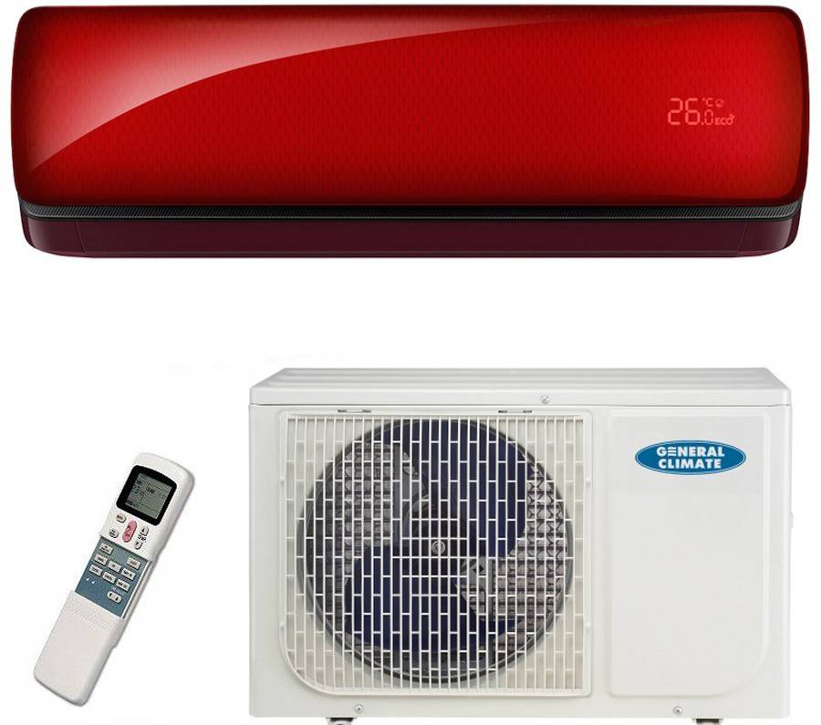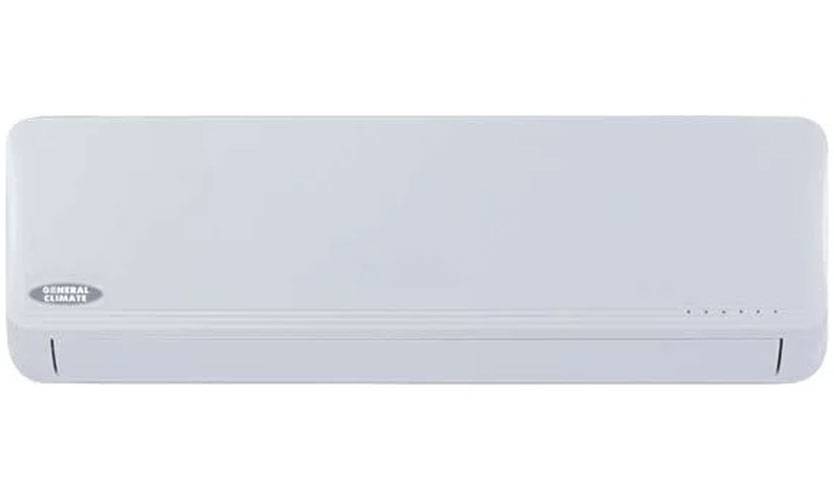 Этот кондиционер «General Climate» может работать на трех скоростях. Имеет компактные размеры внутреннего и внешнего блоков. Оборудование однофазное.