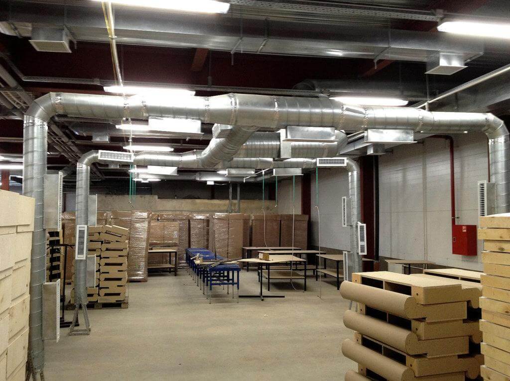 Плюс наборной вентиляции — отдельная очистка воздуха в разных помещениях, возможность регулировать мощность воздушного потока в каждом кабинете. Но подобное инженерное решение имеет и ряд недостатков. Основной — громоздкость. В зданиях, где нет возможности спрятать воздуховоды за навесным потолком, возникают проблемы с эстетичностью данной конструкции.