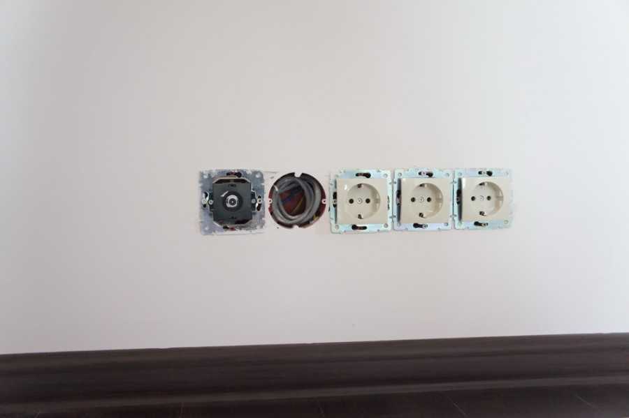 - Проводка для встроенных розеток прокладывается также скрытым способом – в канавках-штробах. После монтажа эти углубления заделываются штукатуркой или шпатлёвкой.