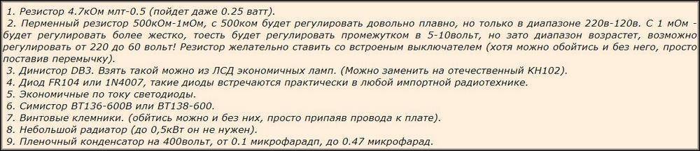 В основе работы симисторного РН — фазовое смещение открывания ключа. Детали схемы можно разделить на две группы: