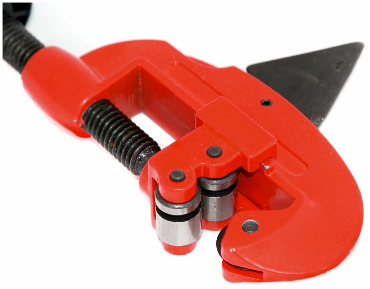 - Роликовый труборез имеет в своей конструкции направляющие приспособления и от одного до трёх режущих роликов. Диаметр труб, которые способно резать такое устройство зависит от количества рабочих роликов. Труборез с одним роликом производит резку трубы диаметром до 50 мм, а с тремя роликами в инструменте можно работать с трубами до 100 мм и более.