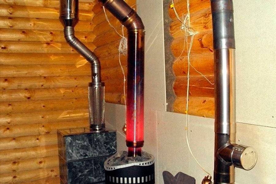 Первый из участков конструкции, прикрепляемый к патрубку агрегата, нельзя делать многослойным, он должен быть выполнен из одностенной металлической трубы со специальными соединениями, в которой имеется задвижка. Этот элемент регулировки дымохода (шибер) используют для создания и поддержания требуемого уровня тяги на время, пока баня прогревается. После завершения топки задвижка позволяет отопительному агрегату долго сохранять тепловую энергию.