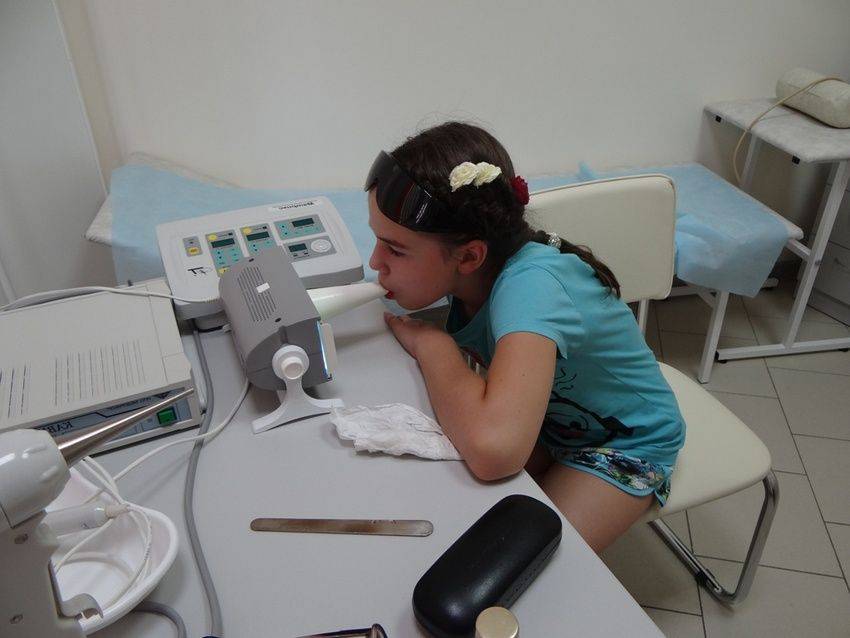 Процесс локального облучения ребенка с помощью лампы «Солнышко»