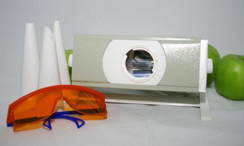Весит прибор 1 кг, в комплекте с ним идут три тубуса для проведения процедур с участием разных участков тела, есть защитные очки и биодозиметр. Цена – около 5 500 рублей. По отзывам пользователей, действительно хорошо помогает в лечении насморка. Плюс ко всему, прибор можно использовать и для санитарной обработки дома.