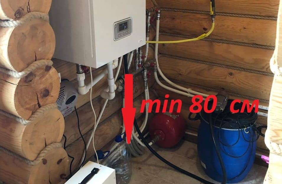 При установке настенного газового котла, предъявляются требования пожарной безопасности. Предусматриваются минимальные противопожарные разрывы: