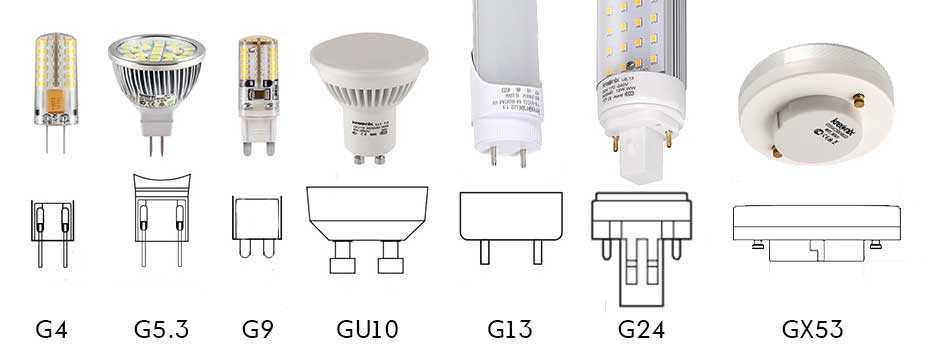 | G24 | 2А, 75Вт | Имеет 4 контакта. Подходит для подключения U-образных люминесцентных и трубчатых светодиодных источников света. |