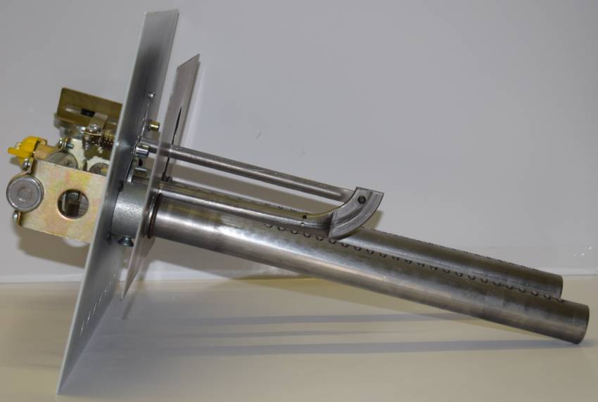 Наддувная газовая горелка, количество подаваемого воздуха регулируется степенью открытия воздушной заслонки.