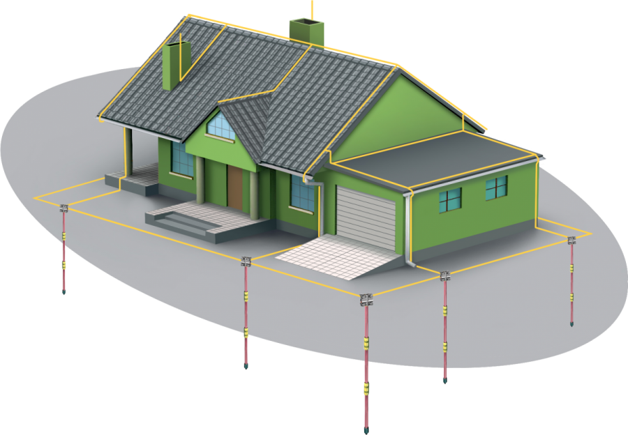 Контуром является та часть системы, которая состоит из штырей и шин, она укладывается в почву, чтобы при перепадах ток уходил в нее.